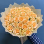 На фото букет из 35 кремовых роз. В составе: роза 35 шт, дизайнерская упаковка 2 шт, атласная лента 1 шт, . Все цветы свежие и ароматные, букет красиво оформлен и отлично подходит для подарка. Доступна доставка цветов или самовывоз.