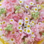 На фото букет из антирринума и ромашек. В составе: антирринум 9 шт, танацетум 5 шт, крафт-бумага 1 шт, атласная лента 1 шт, . Все цветы свежие и ароматные, букет красиво оформлен и отлично подходит для подарка. Доступна доставка цветов или самовывоз.